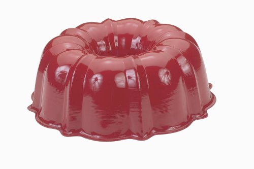 | 11 of 11 people found the following review helpful: By Amazon Verified Purchase This review is from: Nordic Ware Formed Bundt Pan, 12 Cup, Assorted Colors (Kitchen) If you simply need a Bundt pan to bake a nice pound cake (or bread or whatever else you'd like) then this classic and popular find from Nordic Ware is an easy choice. If you've held one of Nordic Ware's Platinum Collection Cast Aluminum Bundt pans (the pans shaped as flowers or cathedrals and such) then the first thing to jump out at you is probably the weight of the cast aluminum. This classic Nordic Ware pan is made from regular aluminum making it considerably lighter than the cast aluminum in the Platinum Collection pans but not making it an inferior product (you will definitely notice the weight difference, though). I baked my first cake in the 12-cup pan and it came out beautifully. The inside is non-stick, supposedly, but I still greased and floured it to very pleasing results (took minimal effort to release the cake from the pan). I would consider one of the $30+ pans from Nordic Ware in the future for the crafty and intricate designs but for everyday and no-hassle holiday... Read more 4 of 4 people found the following review helpful: By ChickenFriedLife (the Midwest) - See all my reviews Amazon Verified Purchase This review is from: Nordic Ware Formed Bundt Pan, 12 Cup, Assorted Colors (Kitchen) First, note that the color of the item is much richer looking than what is pictured. More like "American Flag" red. This is a good basic bundt pan at an extraordinarily good price. I know there are heavier pans out there, but for people who want to bake a nice bundt cake without breaking the bank, this one is what you want. One advantage of having a lighter-weight pan is that if you're short on cabinet storage space, this pan is lightweight enough to hang by a regular nail from the center hole. No matter what the surface of a bundt pan is, whether or not it's supposedly nonstick, you'll still want to grease the pan, either with shortening or nonstick spray. It's large enough to use for cake mixes or your favorite recipe. 2 of 2 people found the following review helpful: This review is from: Nordic Ware Formed Bundt Pan, 12 Cup, Assorted Colors (Kitchen) I bought this at the bullseye today for ten bucks, and after I got it home I was reading some of the reviews on here, so I was a little concerned that I might have some issues, but after baking a cake in it tonight, I don't know why I was even worried! It works great! I used cooking spray (liberally) to coat the pan, filled it with batter all the way to the top, (put it on a cookie sheet, since I knew it was going to overflow a little ;) baked it and let it cool for 35-40 minutes. I loosened the edges at the top just a little bit, then flipped it over onto my cake plate --the bottom of the pan was still a little hot, so I let it sit for a minute. Then I kinda wiggled the pan a little back and forth while lifting it up just a little, until I could feel that it wasn't stuck to the cake, then just pulled it off! Worked like a charm and looks pretty too! It cleaned up really easy as well...even the outside where the cake had overflowed and cooked onto the sides! I'm really happy with it... Read more |